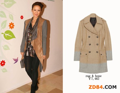 李玟雙色拼接駝色外套溫暖舒適,能在視覺上給人拉長腿部線條的感覺,有增高和顯瘦的效果。