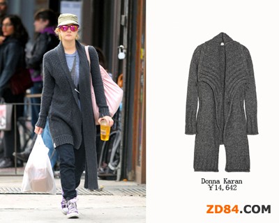 德魯-巴里摩爾(Drew Barrymore)粗棒針毛衣外套,顯得十分厚實(shí)、溫暖,加上大大的圍巾,十分有冬天的感覺(jué),牛仔褲搭配帆布鞋,時(shí)尚帥氣。