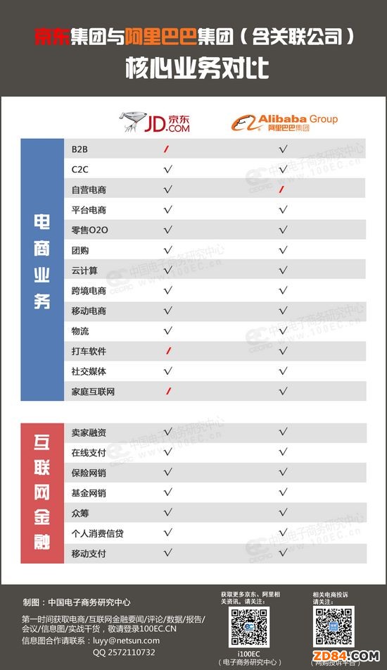 下圖為京東集團(tuán)與阿里集團(tuán)(含關(guān)聯(lián)公司)核心業(yè)務(wù)對(duì)比: