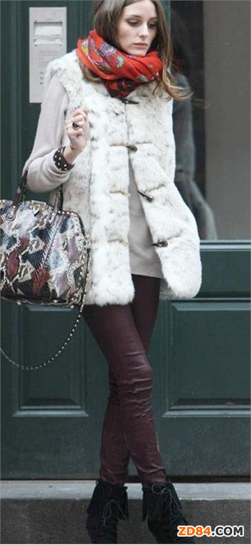 時(shí)尚解析:她是名媛的典范,話說(shuō)是緋聞女孩的現(xiàn)實(shí)版。皮草馬甲是冬天必備的單品,搭配流蘇靴和緊身褲,非常好看。