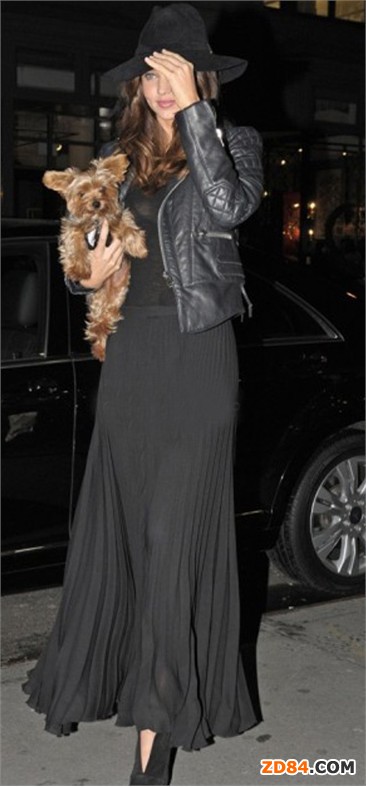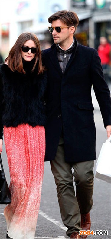 時(shí)尚解析:黑色皮草外套搭配長(zhǎng)款裙,展現(xiàn)出甜美、小鳥依人的一面。