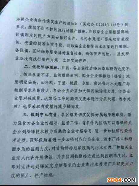 一、嚴格限產(chǎn)到位。全區(qū)涉銻企業(yè)要嚴格按照《關于對全區(qū)涉銻企業(yè)有條件恢復生產(chǎn)的通知》(吳政辦〔2014〕115號)的要求,繼續(xù)不折不扣地執(zhí)行好限產(chǎn)措施。各印染企業(yè)要根據(jù)屬地區(qū)鎮(zhèn)指定的限產(chǎn)方案安排好生產(chǎn)。各污水處理廠要采取管道控制、流量控制等多重手段,對印染企業(yè)接管污水總量進行限制。各區(qū)鎮(zhèn)、區(qū)環(huán)保局要安排好監(jiān)督檢查,確保限產(chǎn)到位,一旦發(fā)現(xiàn)企業(yè)沒有執(zhí)行限產(chǎn)方案,立即實施停產(chǎn)。