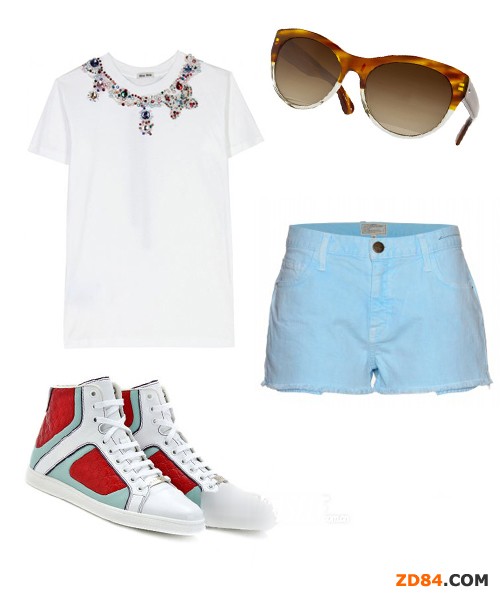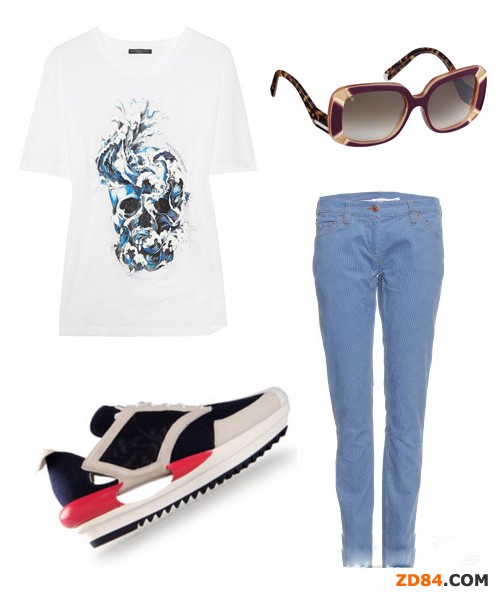 時尚解析:白配藍,非常清爽的顏色搭配,使整個人也立馬活力起來,再加上運動鞋,外出的時候戴上墨鏡,時尚達人就是你!