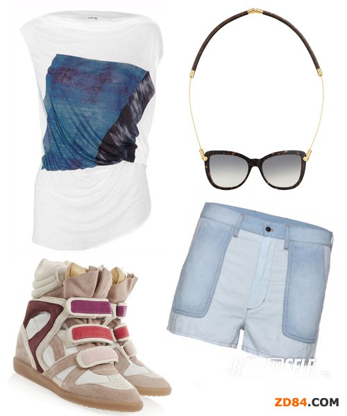 時尚解析:修身又寬松的T恤,高腰牛仔短褲,高幫的運動鞋,帥氣又時尚的運動裝就這么出來了。