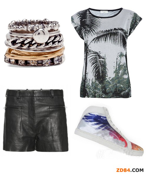 時尚解析:T恤配皮褲,帶了點冷酷感,酷感十足。