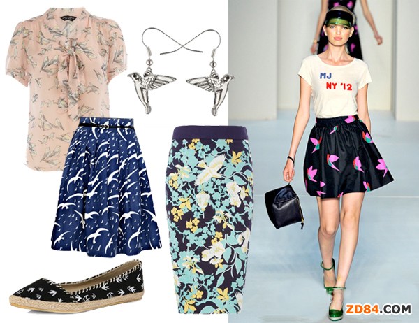 如果覺得整身印花的圖案比較難以接受,那么選擇只在上衣或裙子添加小鳥團印花,這樣的款式適合更多相對保守的美眉們。也可以選擇小鳥造型的首飾或者鞋子,記住,只要給你的平凡基本款增加一點小小的創(chuàng)意,你的這個五一假期就可以像春天的小鳥一樣充滿活力。