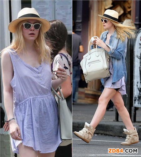 時(shí)尚解析:淡紫色的背心裙充滿少女氣息,天氣稍涼,外加牛仔襯衫一樣很有型,白色笑臉包最近的出鏡率也挺高,干凈白色也很適合這身清爽搭配。