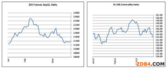 紐約期棉-在本報告周,棉花大多時間在高位交易,最終收于交易區(qū)間87.00美分-94.50美分(12年5月合約)的中間段?傮w講,市場勢頭比較薄弱,市場交易大多數(shù)量不大。美國凈銷售數(shù)字很不錯,似乎給市場提供進(jìn)一步支持。雖然美國銷售仍然相對強(qiáng)勁,但非美棉需求依然平淡,主要集中在中國貿(mào)易公司。周復(fù)一周,棉花市場顯得有些孤立,近幾天所有主要商品指數(shù)下跌,而棉花近期交易較強(qiáng)。12年7月-12年12月價差現(xiàn)在回到1美分/磅以上,此前,只有幾周時間12年7月和12年12月中間出現(xiàn)溢價。