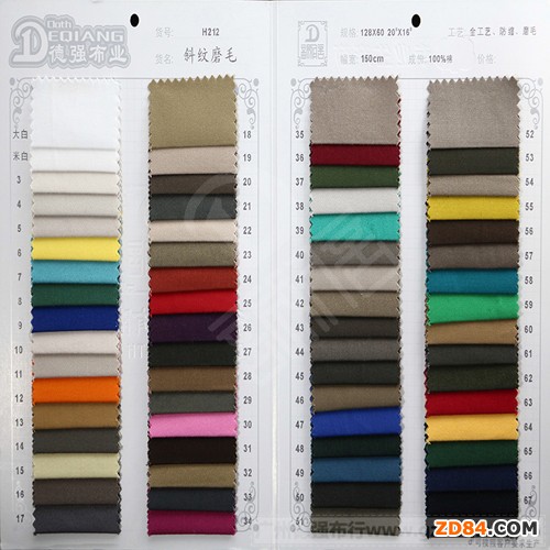 手感面料稍厚,手感柔軟,重磨毛。無彈力,如果做秋冬褲子面料,應(yīng)該非常舒服。紋路正面中斜,背面平紋。